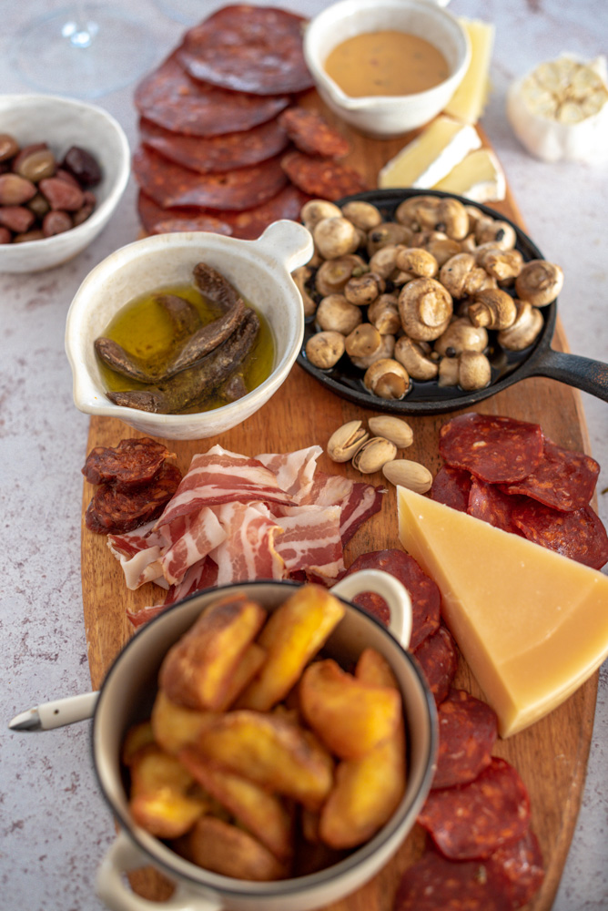Plate ne moraju biti samo s narescima, možete na njih slagati i pečeno povrće, umake i razne priloge. Ova plata sadrži domaći krumpir u kori, slane srdele te pečene gljive.
